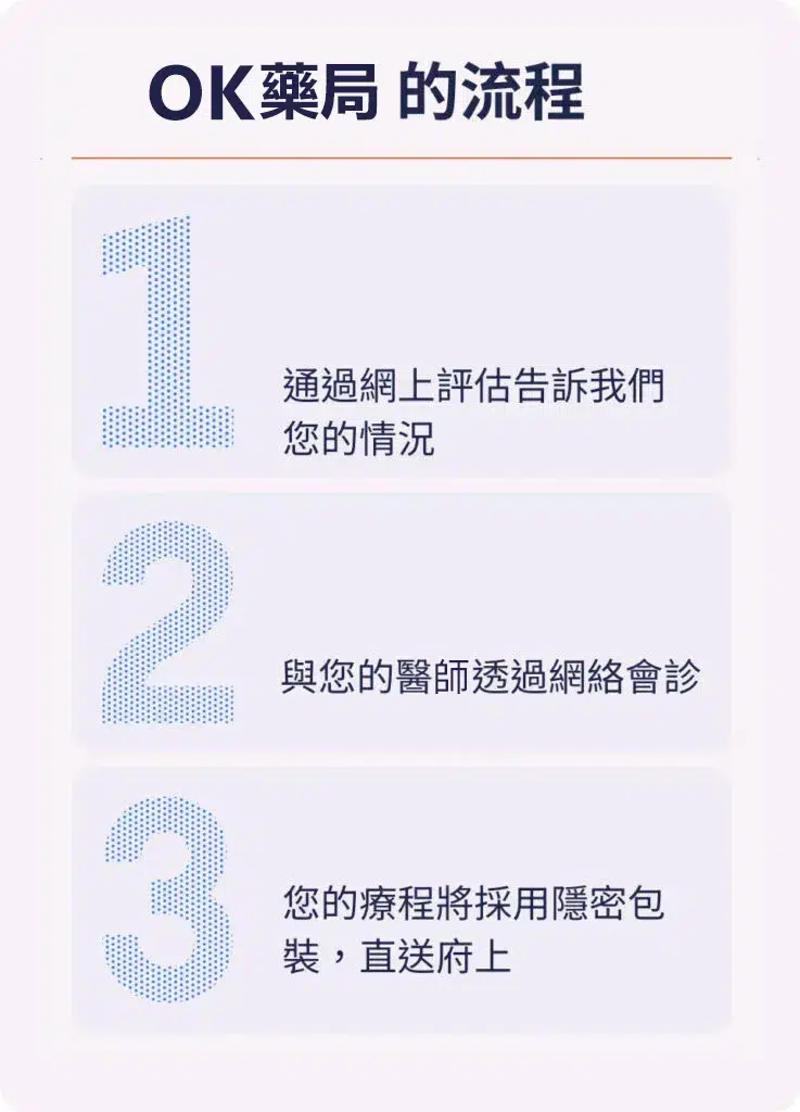 「在OK藥局,我們知道患者十分重視私隱、速度、可負擔性和嚴謹度。這就是為什麼我們的服務,從諮詢到配送,都是針對這一點而設計的。」