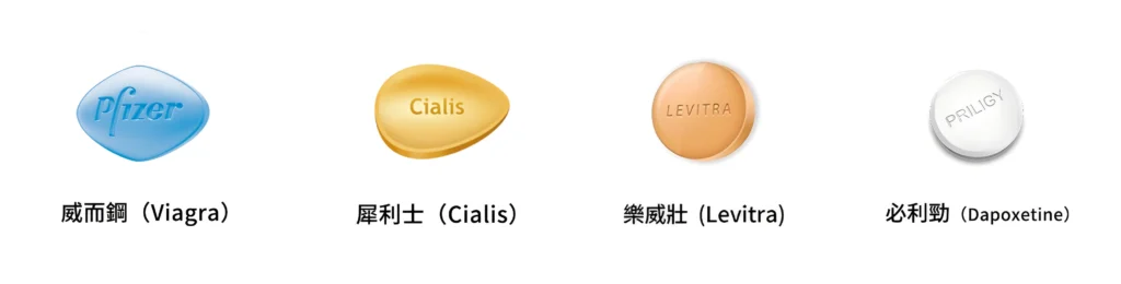 - 必利勁(Priligy):專為治療早洩設計,延長性愛時間,提升性生活品質。